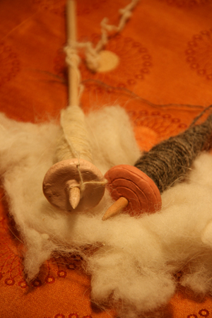 | Keltisches Handspindeln (im Winter mit Schafwolle) |